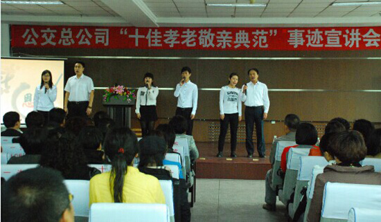為進(jìn)一步弘揚(yáng)社會(huì)主義核心價(jià)值觀和中華民族尊老敬老、愛老養(yǎng)老的傳統(tǒng)美德,強(qiáng)化職工的孝老敬親意識(shí),市公交總公司工會(huì)于9月初開始在公司全體職工中開展了尋找“公交孝老敬親典范”活動(dòng)。在近一個(gè)月的評選中,通過層層宣傳發(fā)動(dòng),職工自薦、基層推薦,逐級審核把關(guān)、總公司評審小組審定等程序,評選出公交總公司“孝老敬親典范” 10名、“優(yōu)秀孝老敬親模范”56名。 29日,總公司工會(huì)在十樓會(huì)議室召開了“十佳孝老敬親典范”事跡宣講會(huì)。會(huì)上,8名來自一線調(diào)度員、保潔員、充值員和修理工的“十佳孝老敬親典范”親身講述了自己孝老敬親的感人故事,他們的精彩宣講讓在場的觀眾熱淚盈眶。在宣講中,還進(jìn)行了詩朗誦《感恩父母》、小提琴演奏《時(shí)間都去哪了》、歌曲《感恩的心》等文藝表演,將活動(dòng)推向了高潮。 此次孝老敬親典范事跡宣講活動(dòng)為推進(jìn)企業(yè)精神文明建設(shè),弘揚(yáng)孝文化、營造崇尚孝道的良好社會(huì)風(fēng)尚,讓大家學(xué)習(xí)我們身邊的榜樣,人人爭當(dāng)孝老敬親典范,產(chǎn)生了積極的影響和有力地促進(jìn)作用。 |