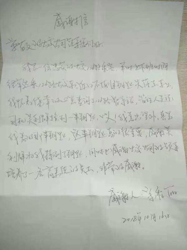 2018年10月16日,一公司三隊126線駕駛員吳立群在車上撿到一串鑰匙,交給當班調(diào)度,事后失主到調(diào)度室尋找,找到了自己的鑰匙,很是感謝,并送來感謝信一封表達自己的感激之情。